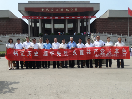 一是結(jié)合近期開展的“三嚴(yán)三實(shí)”專題教育,組織黨員干部在錦東會議室召開了“嚴(yán)以修身”專題教育研討交流會。二是結(jié)合自身實(shí)際,開展了“送清涼”活動,向工作在一線的員工和駕乘人員送去了降溫茶、防暑藥品和礦泉水,送去了公司的關(guān)懷與問候。三是開展了走訪慰問活動,看望了兩名困難黨員并送去了慰問金。四是全體黨員前往臺兒莊大戰(zhàn)紀(jì)念館,學(xué)習(xí)英雄事跡,進(jìn)行深刻的愛國主義教育。五是結(jié)合集團(tuán)公司工會開展的“征集紀(jì)念中國人民抗日戰(zhàn)爭暨世界反法西斯戰(zhàn)爭勝利70周年‘中國夢、勞動美、愛國情’職工書畫、攝影展作品”活動,推薦了《臺兒莊戰(zhàn)役紀(jì)念館浮雕》 《修理工》2幅攝影作品參展,激發(fā)廣大職工銘記歷史、緬懷先烈、珍愛和平、開創(chuàng)未來的愛國情懷。