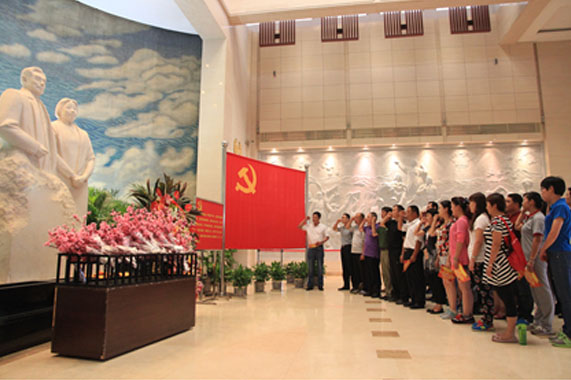 在周鄧紀(jì)念館,全體黨員及預(yù)備黨員,在黨旗和周恩來總理的塑像前,重溫入黨誓詞,讓新老黨員充分感受黨的神圣,堅定黨的信念和為共產(chǎn)主義奮斗終生的決心,以更加飽滿的熱情發(fā)揮共產(chǎn)黨員的先鋒模范作用。