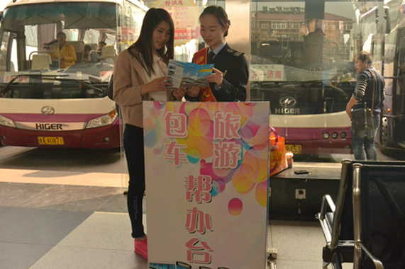 包車旅游幫辦臺,出行服務(wù)好幫手。為方便廣大團體旅客特別是來濟轉(zhuǎn)乘的團體旅客辦理包車、旅游等業(yè)務(wù),總站在中轉(zhuǎn)旅客較為集中的40號檢票口設(shè)立了“包車旅游幫辦臺”,為外地來濟的團體旅客提供包車優(yōu)惠、旅游咨詢的專項服務(wù)。僅三天時間,就幫助14個團體旅客群體辦理了包車業(yè)務(wù),實現(xiàn)包車收入8000余元。