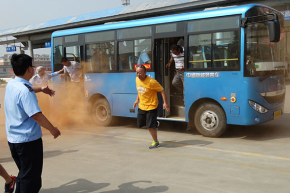 6月28日上午9時,隨著平陰客運中心院內(nèi)突然傳來一聲爆炸聲,模擬停車場班車發(fā)生火情,一陣黃色的煙霧從公交車底散出。工作人員第一時間用滅火器滅火并輸散旅客和車輛,同時迅速通知消防隊及救援人員火速到達現(xiàn)場處理后續(xù)事宜,力爭將損失降至最低。