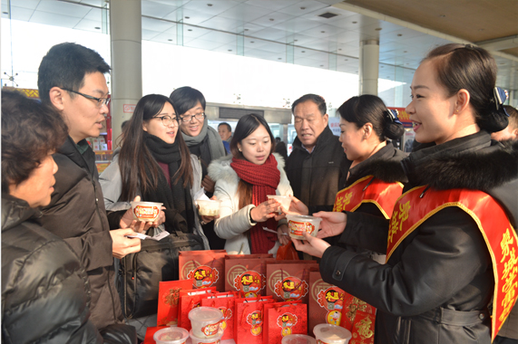 冬至餃子,旅途送暖。冬至當(dāng)日,檢票部精心策劃了“冬至餃子旅途送暖”活動,準(zhǔn)備了熱氣騰騰的水餃、裝滿禮物的福袋送給來站乘車的旅客,在寒冷的冬天為旅客送上一份溫暖。活動一經(jīng)推出深受廣大旅客好評,得到《交通進(jìn)行時》、《有么說么》等電視欄目的報道,樹立了總站優(yōu)質(zhì)的服務(wù)形象。
